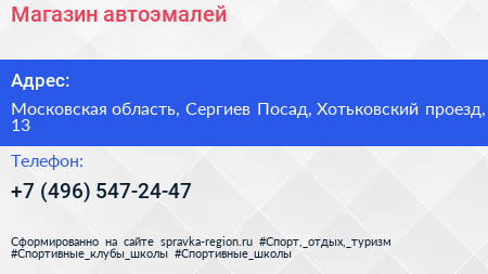 Магазин автоэмалей по адресу Московская область, Сергиев Посад, Хотьковский проезд, 13 в дальнейшем Организация, размещена в следующих категориях: