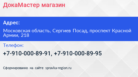 ДокаМастер, магазин по адресу Московская область, Сергиев Посад, проспект Красной Армии, 218 в дальнейшем Организация, размещена в следующих категориях: