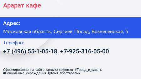 Арарат, кафе по адресу Московская область, Сергиев Посад, Вознесенская, 5 в дальнейшем Организация, размещена в следующих категориях: