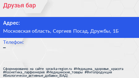 Друзья, бар по адресу Московская область, Сергиев Посад, Дружбы, 1Б в дальнейшем Организация, размещена в следующих категориях: