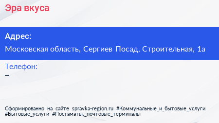 Эра вкуса по адресу Московская область, Сергиев Посад, Строительная, 1а в дальнейшем Организация, размещена в следующих категориях: