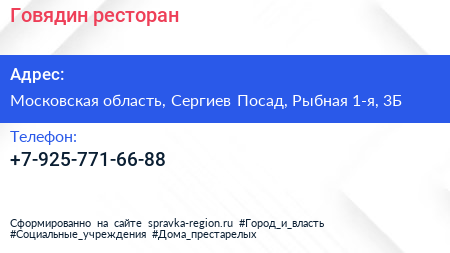 Говядин, ресторан по адресу Московская область, Сергиев Посад, Рыбная 1-я, 3Б в дальнейшем Организация, размещена в следующих категориях: