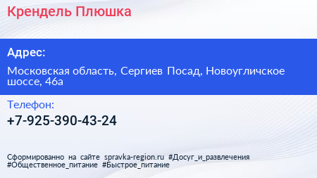 Крендель & Плюшка по адресу Московская область, Сергиев Посад, Новоугличское шоссе, 46а в дальнейшем Организация, размещена в следующих категориях: