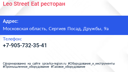 Leo Street Eat, ресторан по адресу Московская область, Сергиев Посад, Дружбы, 9а в дальнейшем Организация, размещена в следующих категориях: