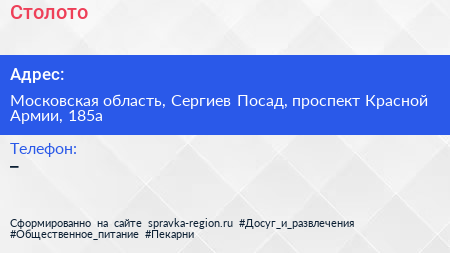 Столото по адресу Московская область, Сергиев Посад, проспект Красной Армии, 185а в дальнейшем Организация, размещена в следующих категориях: