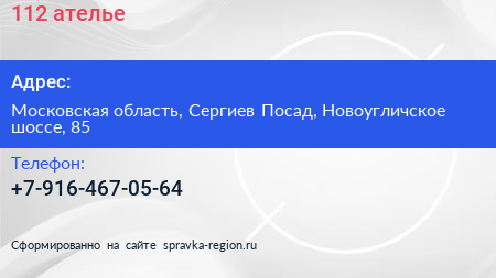 112, ателье по адресу Московская область, Сергиев Посад, Новоугличское шоссе, 85 в дальнейшем Организация, размещена в следующих категориях: