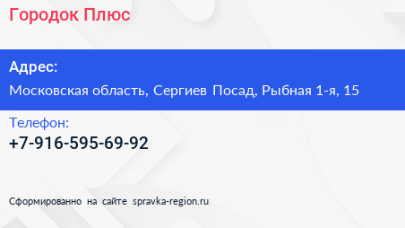 Городок Плюс по адресу Московская область, Сергиев Посад, Рыбная 1-я, 15 в дальнейшем Организация, размещена в следующих категориях:
