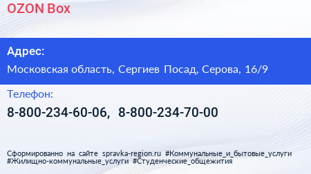 OZON Box по адресу Московская область, Сергиев Посад, Серова, 16/9 в дальнейшем Организация, размещена в следующих категориях: