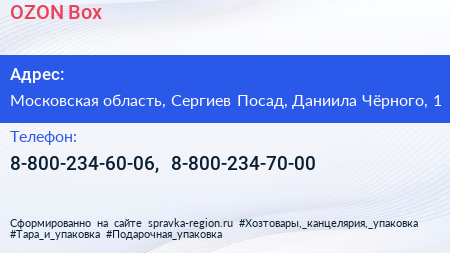 OZON Box по адресу Московская область, Сергиев Посад, Даниила Чёрного, 1 в дальнейшем Организация, размещена в следующих категориях: