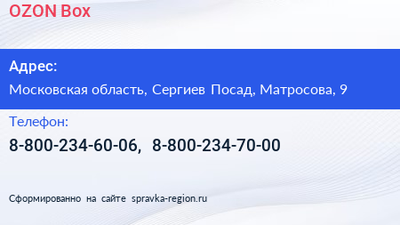 OZON Box по адресу Московская область, Сергиев Посад, Матросова, 9 в дальнейшем Организация, размещена в следующих категориях:
