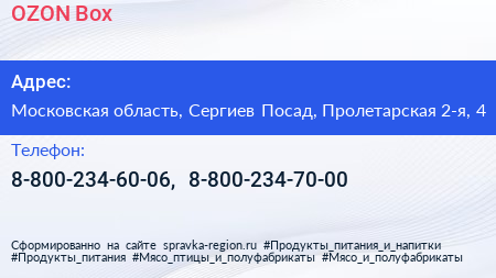 OZON Box по адресу Московская область, Сергиев Посад, Пролетарская 2-я, 4 в дальнейшем Организация, размещена в следующих категориях:
