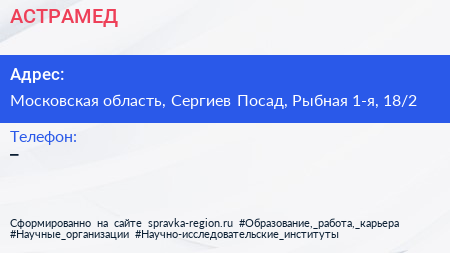 АСТРАМЕД+ по адресу Московская область, Сергиев Посад, Рыбная 1-я, 18/2 в дальнейшем Организация, размещена в следующих категориях: