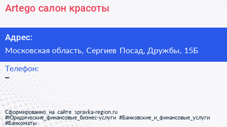 Artego, салон красоты по адресу Московская область, Сергиев Посад, Дружбы, 15Б в дальнейшем Организация, размещена в следующих категориях: