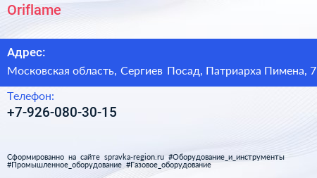 Oriflame по адресу Московская область, Сергиев Посад, Патриарха Пимена, 7 в дальнейшем Организация, размещена в следующих категориях: