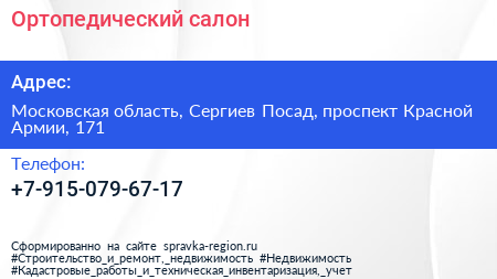 Ортопедический салон по адресу Московская область, Сергиев Посад, проспект Красной Армии, 171 в дальнейшем Организация, размещена в следующих категориях: