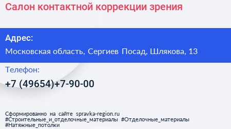 Салон контактной коррекции зрения по адресу Московская область, Сергиев Посад, Шлякова, 13 в дальнейшем Организация, размещена в следующих категориях: