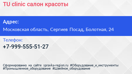 TU clinic, салон красоты по адресу Московская область, Сергиев Посад, Болотная, 24 в дальнейшем Организация, размещена в следующих категориях: