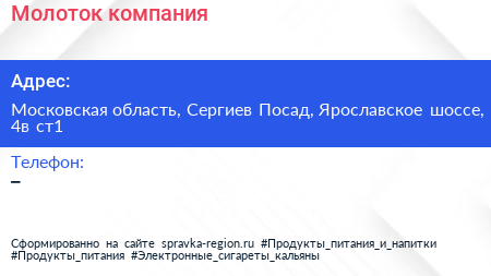 Молоток, компания по адресу Московская область, Сергиев Посад, Ярославское шоссе, 4в ст1 в дальнейшем Организация, размещена в следующих категориях: