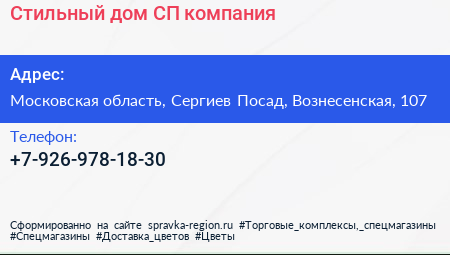 Стильный дом СП, компания по адресу Московская область, Сергиев Посад, Вознесенская, 107 в дальнейшем Организация, размещена в следующих категориях: