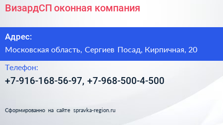 ВизардСП, оконная компания по адресу Московская область, Сергиев Посад, Кирпичная, 20 в дальнейшем Организация, размещена в следующих категориях: