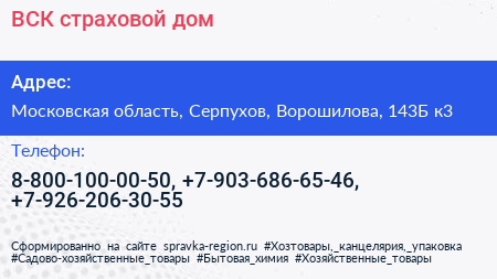 ВСК, страховой дом по адресу Московская область, Серпухов, Ворошилова, 143Б к3 в дальнейшем Организация, размещена в следующих категориях: