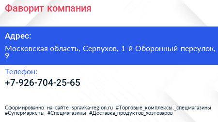 Фаворит, компания по адресу Московская область, Серпухов, 1-й Оборонный переулок, 9 в дальнейшем Организация, размещена в следующих категориях: