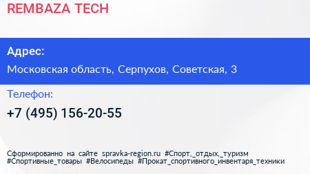 REMBAZA.TECH по адресу Московская область, Серпухов, Советская, 3 в дальнейшем Организация, размещена в следующих категориях: