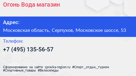 Огонь & Вода, магазин по адресу Московская область, Серпухов, Московское шоссе, 53 в дальнейшем Организация, размещена в следующих категориях: