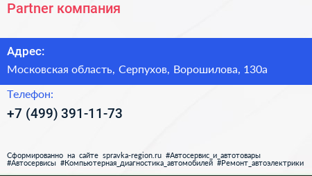 Partner, компания по адресу Московская область, Серпухов, Ворошилова, 130а в дальнейшем Организация, размещена в следующих категориях: