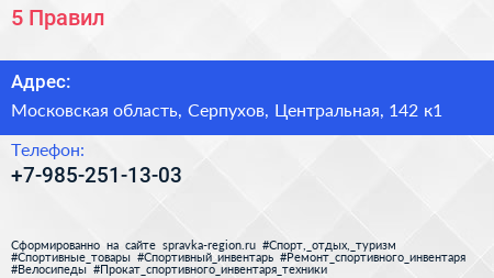 5 Правил по адресу Московская область, Серпухов, Центральная, 142 к1 в дальнейшем Организация, размещена в следующих категориях: