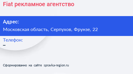 Fiat, рекламное агентство по адресу Московская область, Серпухов, Фрунзе, 22 в дальнейшем Организация, размещена в следующих категориях: