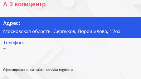 А-3, копицентр по адресу Московская область, Серпухов, Ворошилова, 126а в дальнейшем Организация, размещена в следующих категориях: