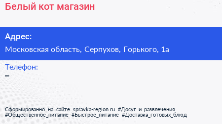 Белый кот, магазин по адресу Московская область, Серпухов, Горького, 1а в дальнейшем Организация, размещена в следующих категориях: