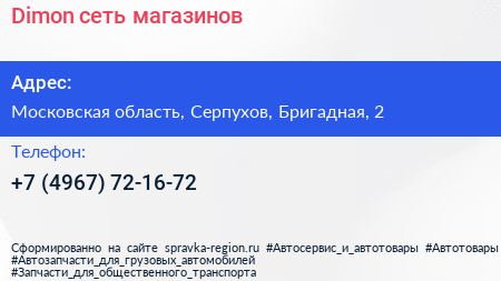 Dimon, сеть магазинов по адресу Московская область, Серпухов, Бригадная, 2 в дальнейшем Организация, размещена в следующих категориях:
