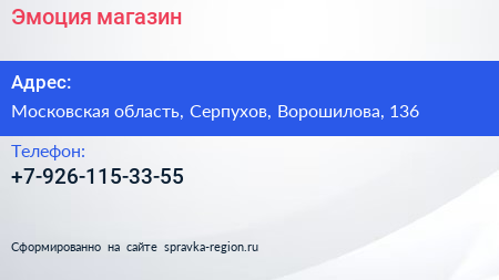 Эмоция, магазин по адресу Московская область, Серпухов, Ворошилова, 136 в дальнейшем Организация, размещена в следующих категориях: