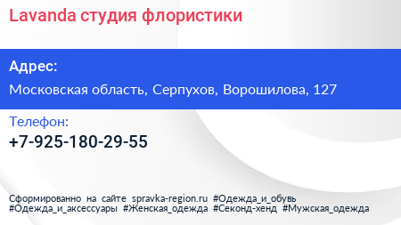 Lavanda, студия флористики по адресу Московская область, Серпухов, Ворошилова, 127 в дальнейшем Организация, размещена в следующих категориях: