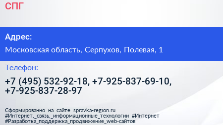 СПГ по адресу Московская область, Серпухов, Полевая, 1 в дальнейшем Организация, размещена в следующих категориях: