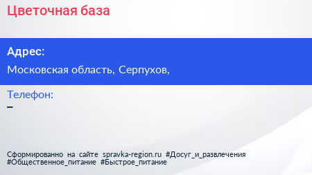 Цветочная база по адресу Московская область, Серпухов, в дальнейшем Организация, размещена в следующих категориях: