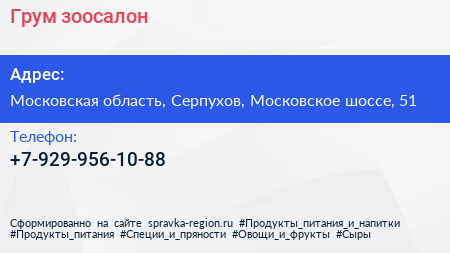 Грум, зоосалон по адресу Московская область, Серпухов, Московское шоссе, 51 в дальнейшем Организация, размещена в следующих категориях: