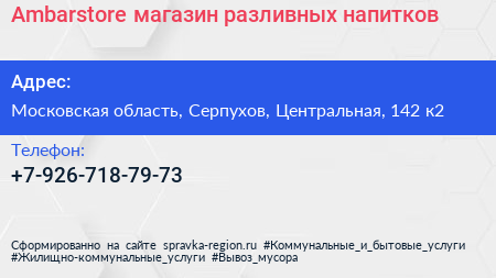 Ambarstore, магазин разливных напитков по адресу Московская область, Серпухов, Центральная, 142 к2 в дальнейшем Организация, размещена в следующих категориях: