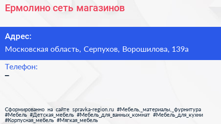 Ермолино, сеть магазинов по адресу Московская область, Серпухов, Ворошилова, 139а в дальнейшем Организация, размещена в следующих категориях: