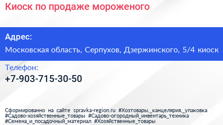 Киоск по продаже мороженого по адресу Московская область, Серпухов, Дзержинского, 5/4 киоск в дальнейшем Организация, размещена в следующих категориях: