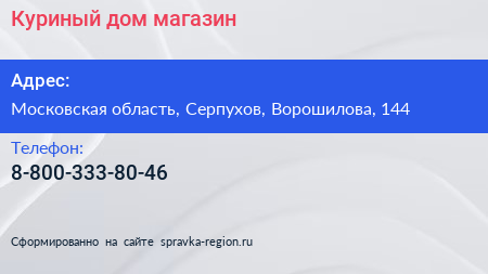 Куриный дом, магазин по адресу Московская область, Серпухов, Ворошилова, 144 в дальнейшем Организация, размещена в следующих категориях:
