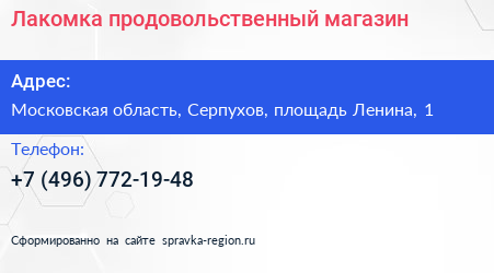 Лакомка, продовольственный магазин по адресу Московская область, Серпухов, площадь Ленина, 1 в дальнейшем Организация, размещена в следующих категориях: