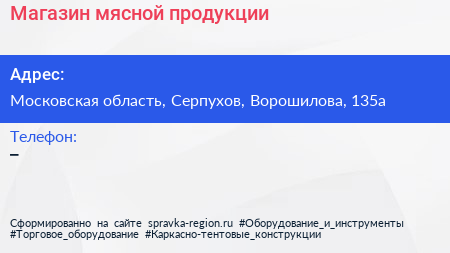Магазин мясной продукции по адресу Московская область, Серпухов, Ворошилова, 135а в дальнейшем Организация, размещена в следующих категориях: