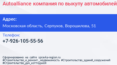 Autoalliance, компания по выкупу автомобилей по адресу Московская область, Серпухов, Ворошилова, 51 в дальнейшем Организация, размещена в следующих категориях: