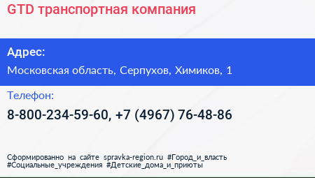 GTD, транспортная компания по адресу Московская область, Серпухов, Химиков, 1 в дальнейшем Организация, размещена в следующих категориях: