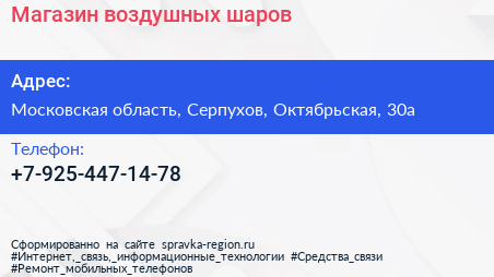 Магазин воздушных шаров по адресу Московская область, Серпухов, Октябрьская, 30а в дальнейшем Организация, размещена в следующих категориях: