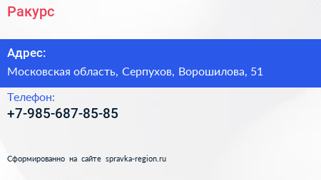 Ракурс по адресу Московская область, Серпухов, Ворошилова, 51 в дальнейшем Организация, размещена в следующих категориях: