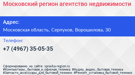 Московский регион, агентство недвижимости по адресу Московская область, Серпухов, Ворошилова, 30 в дальнейшем Организация, размещена в следующих категориях: